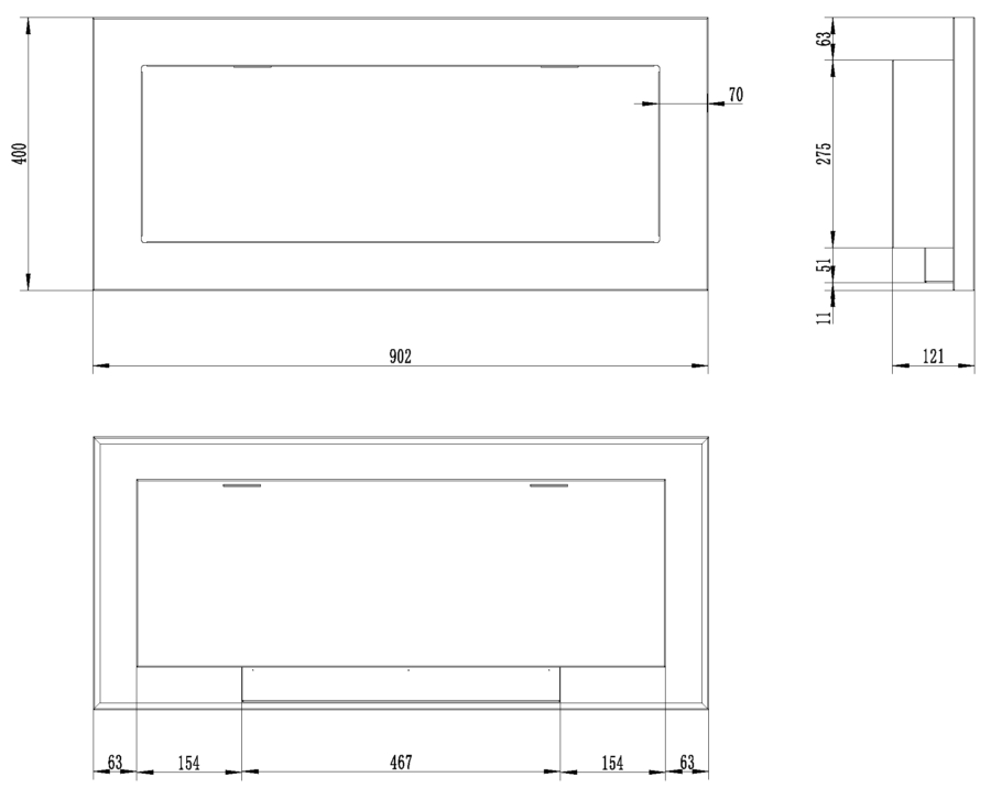 Aflamo Honos 155 - biokominek ścienny/ do zabudowy