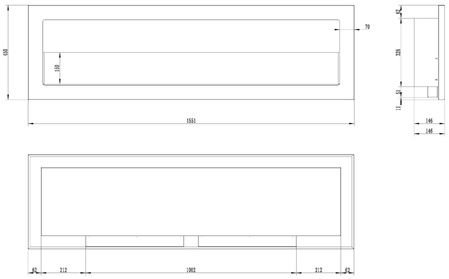 Aflamo Honos 155 z szybą - biokominek ścienny/ do zabudowy