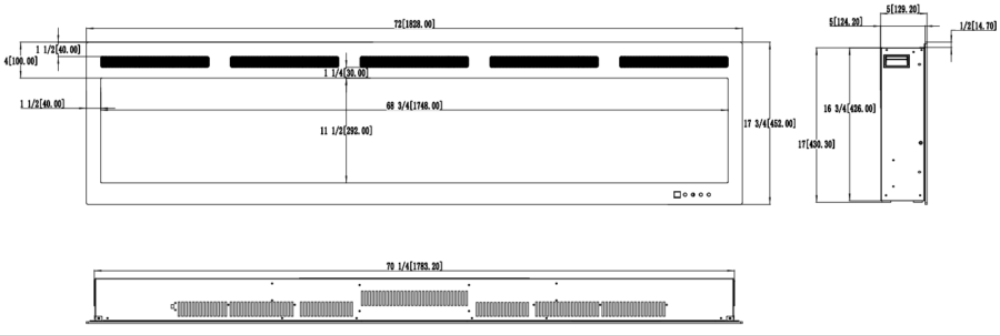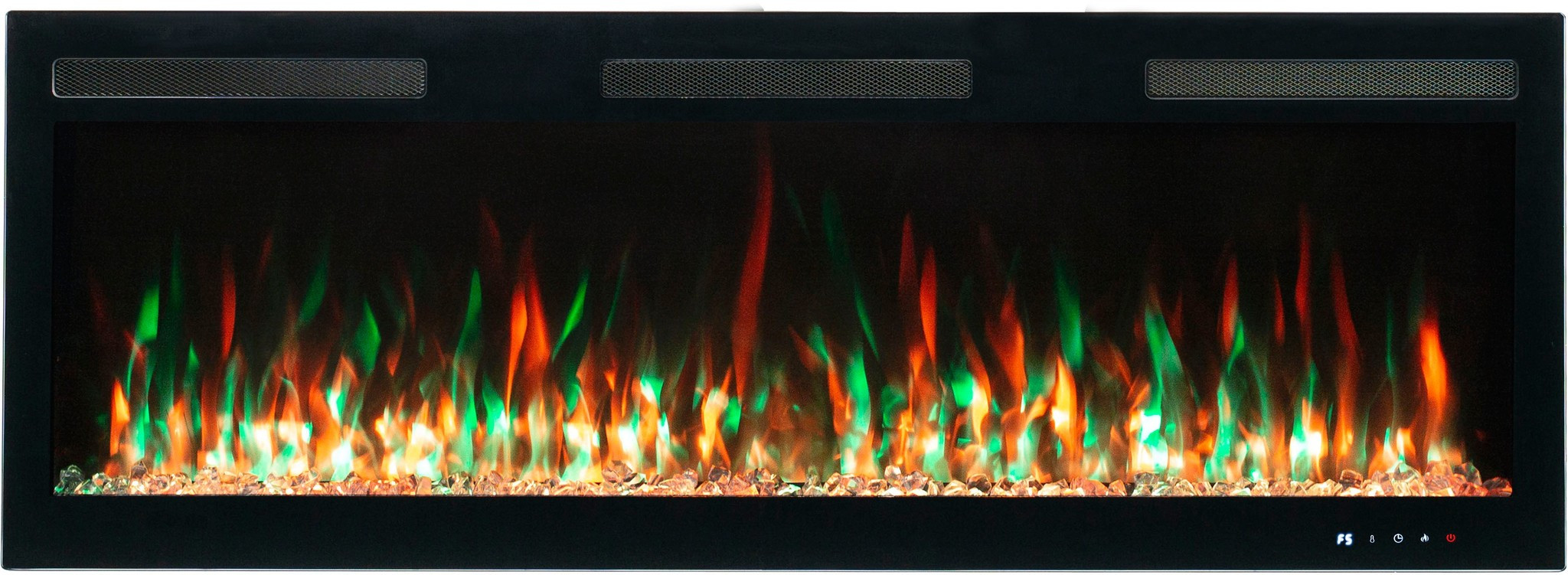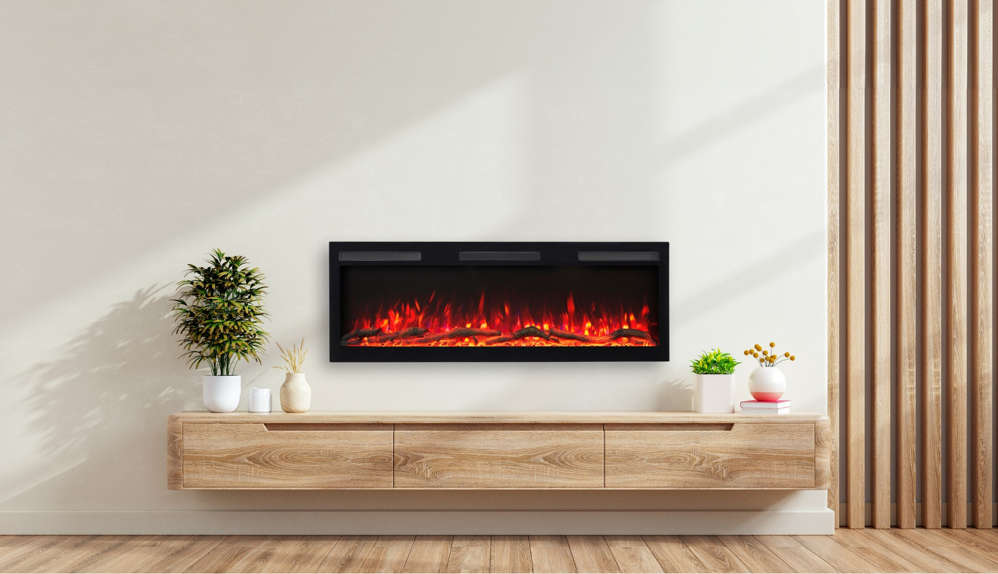 Kominek elektryczny do zabudowy/powieszenia na ścianie z funkcją grzewczą.