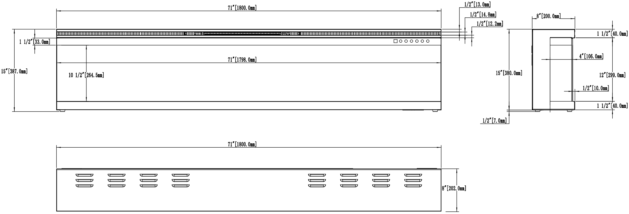 Kominek elektryczny LED do powieszenia na ścianę/do zabudowy
